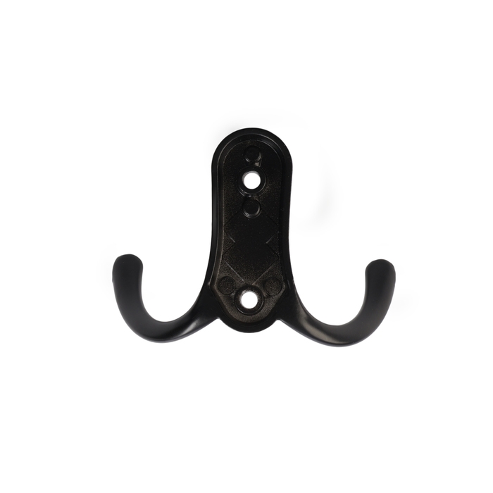 Крючок мебельный ТУНДРА TKD024 LIGHT, двухрожковый, черный