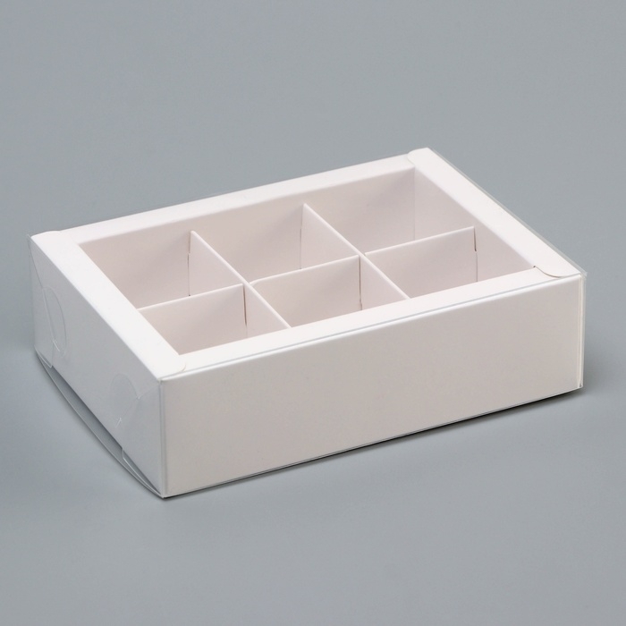 - Внутри коробки предусмотрены 6 ячеек для аккуратного размещения конфет, что обеспечивает их сохранность и презентабельный вид.