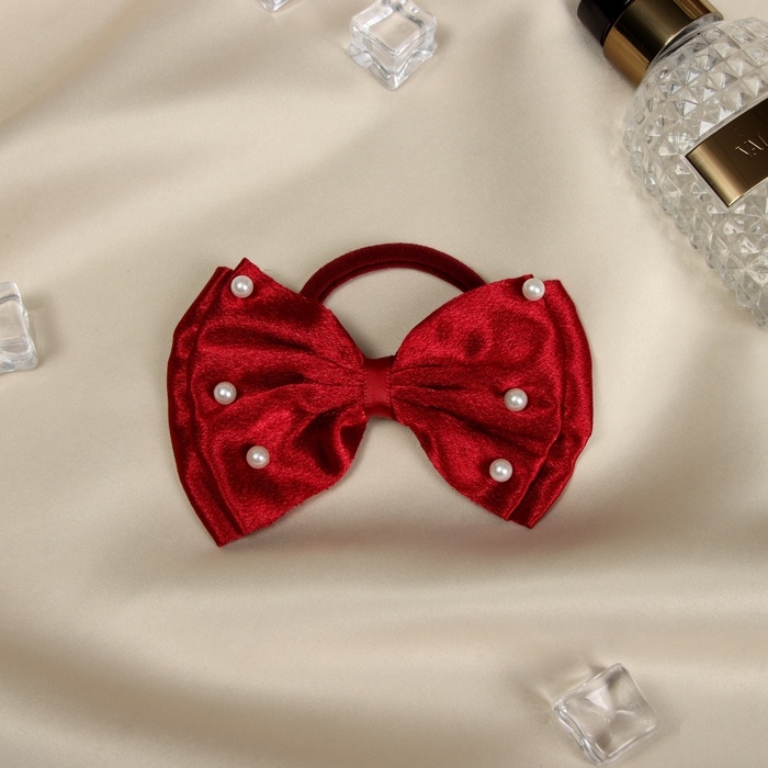 Резинка для волос "Школьница стиль" бусины, 10,5 см, красный