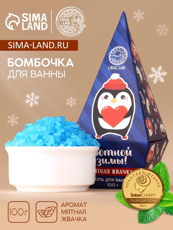 Соль для ванны URAL LAB «Уютной зимы», 100 г, аромат мятной жвачки, Новый Год