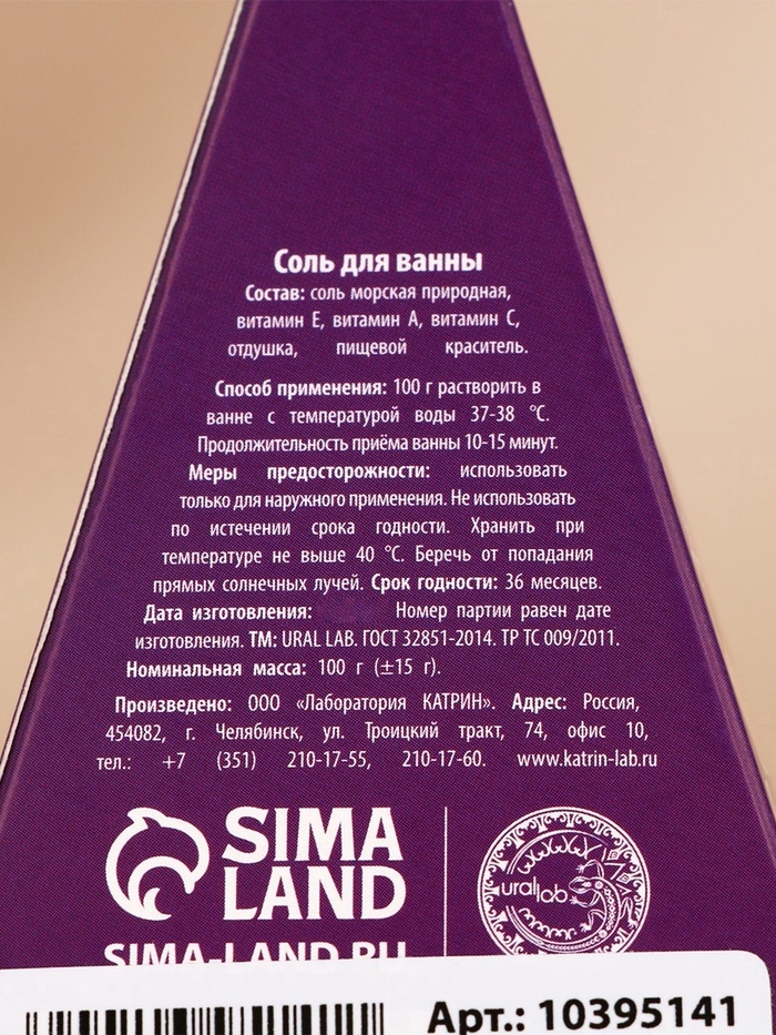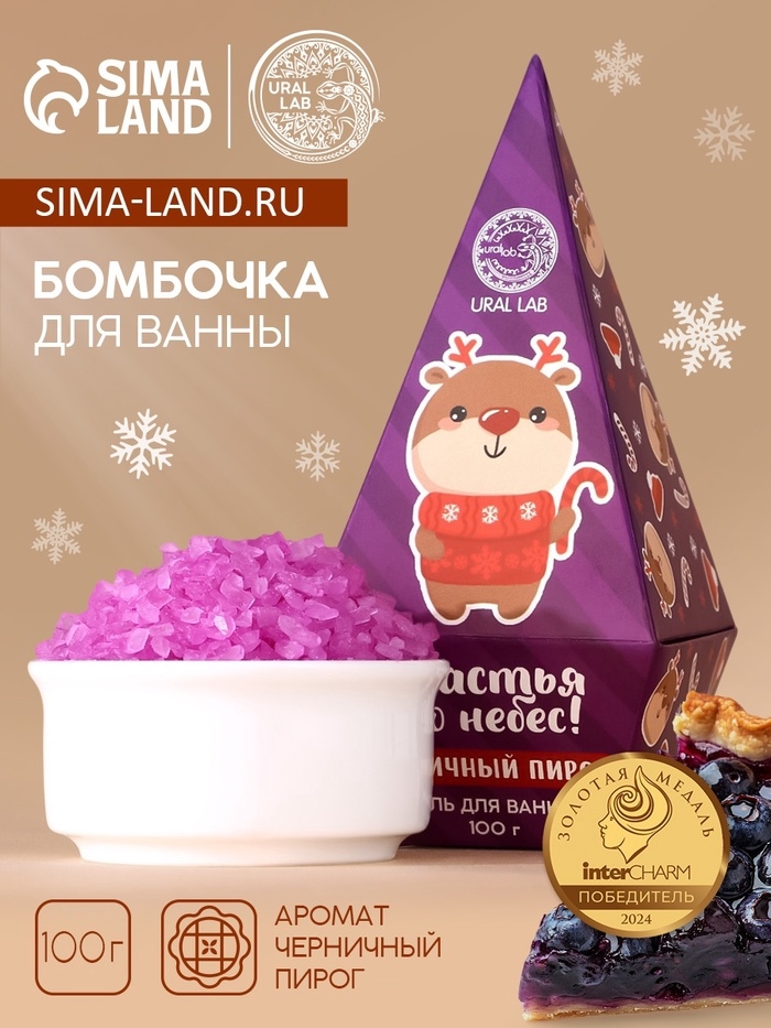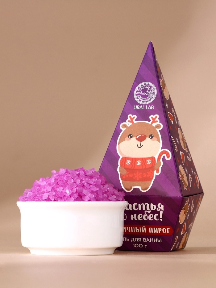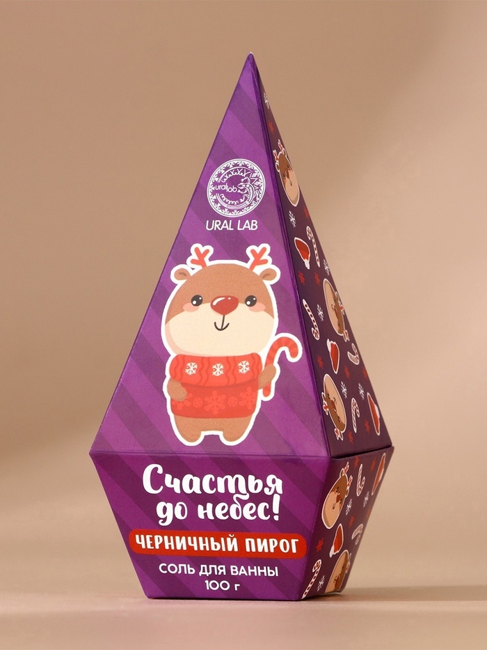Соль для ванны URAL LAB «Счастья до небес!», 100 г, аромат черничного пирога, Новый Год