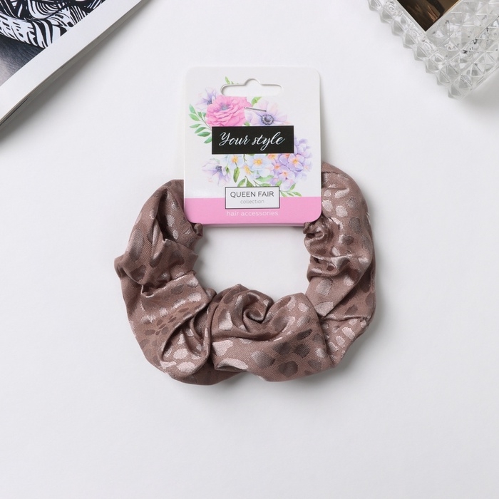 Резинка для волос "Орбита" орнамент пятна, 10 см, коричневый
