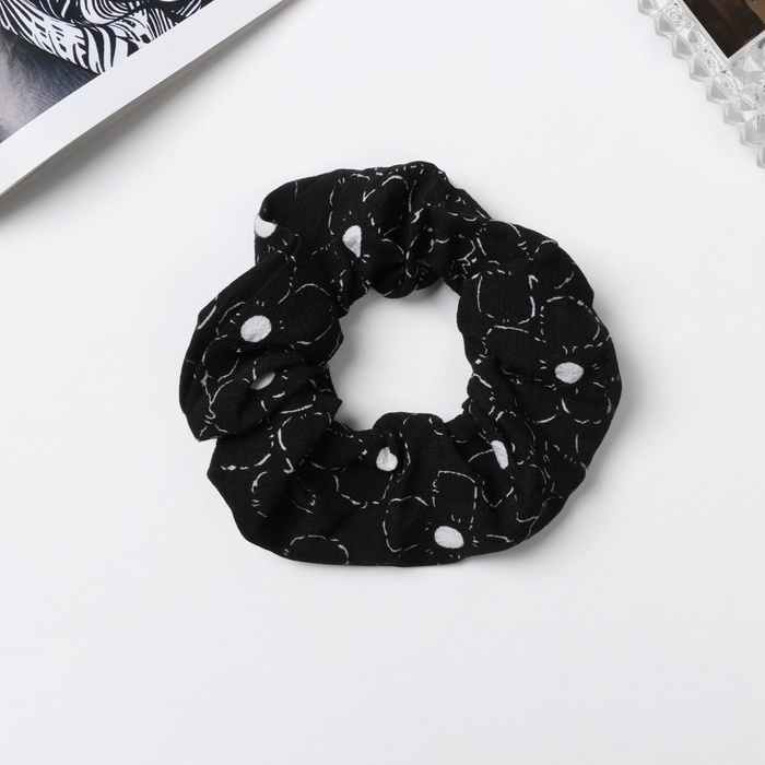 Резинка для волос "Орбита" цветы стиль, 10 см, бело-чёрный