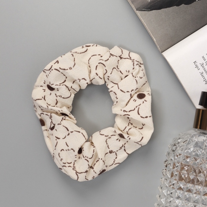 Резинка для волос "Орбита" цветы стиль, 10 см, коричнево-бежевый