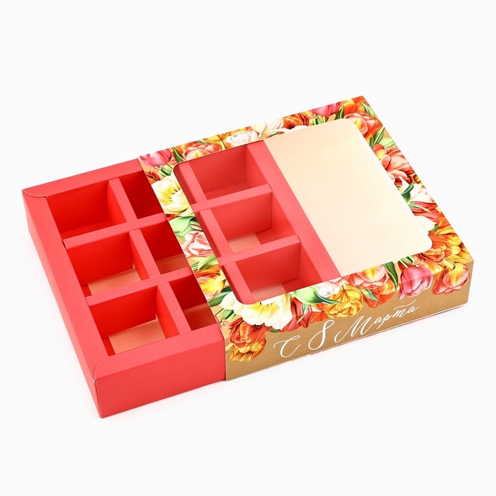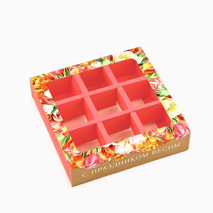 Коробка под 9 конфет с ячейками «8 марта» 14.5 х 14.5 х 3.5 см
