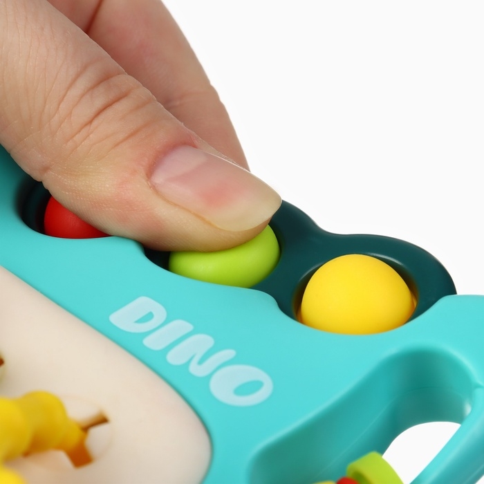 «Малыш Дино» выполнен из высококачественных материалов, безопасных для здоровья малыша. Внутри игрушки находятся разноцветные шарики, которые гремят при встряхивании. Это привлекает внимание ребёнка и стимулирует его слух.
