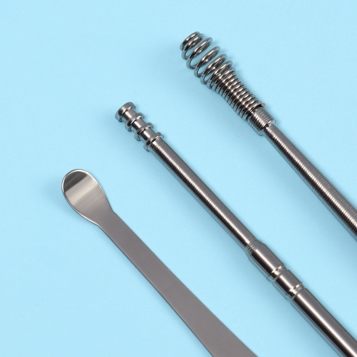 Представляем вам металлический набор для чистки ушей — идеальный инструмент для поддержания гигиены и здоровья ваших ушей. Этот набор включает в себя три металлических инструмента, выполненных из прочной стали, обеспечивающей долговечность и легкость в уходе. Каждый инструмент имеет удобную ручку и оптимальную форму, что делает процесс чистки безопасным и комфортным.