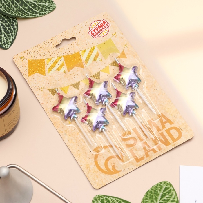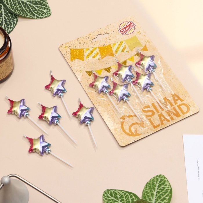 Набор свечей для торта, 5 шт "Воздушный шарик. Звезда", разноцветные