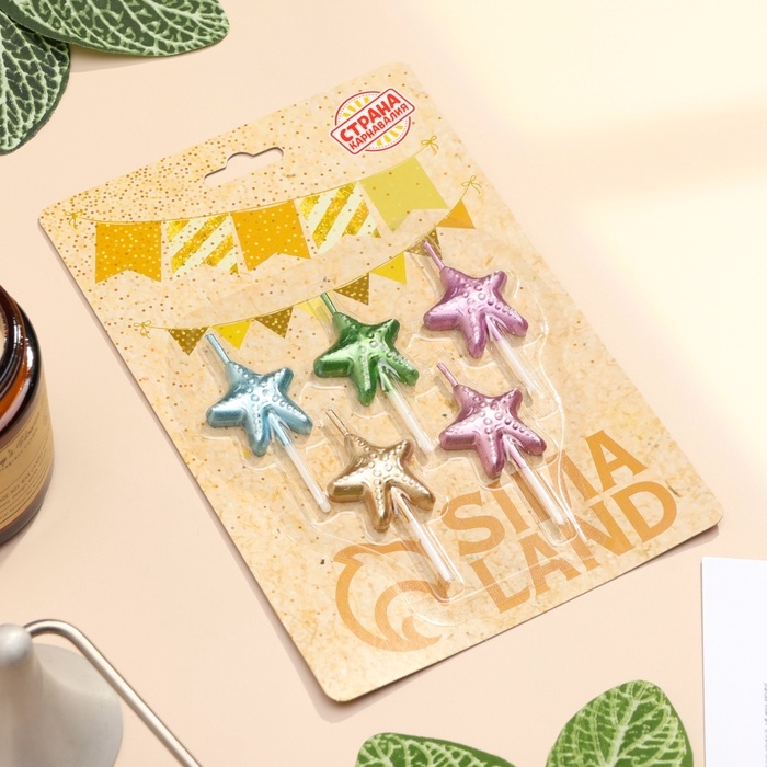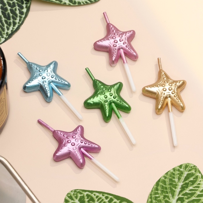 Набор свечей для торта, 5 шт "Морские звезды", разноцветные