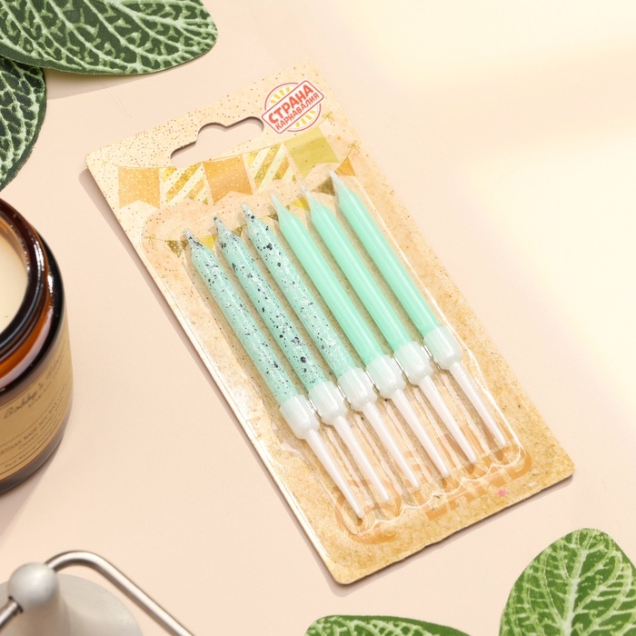 Свечи для торта "Блестящая вечеринка", 6 шт, голубые