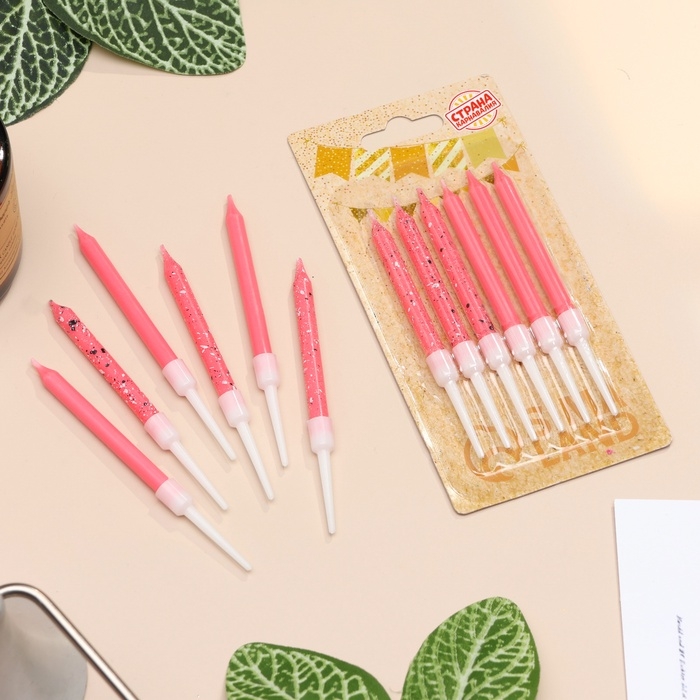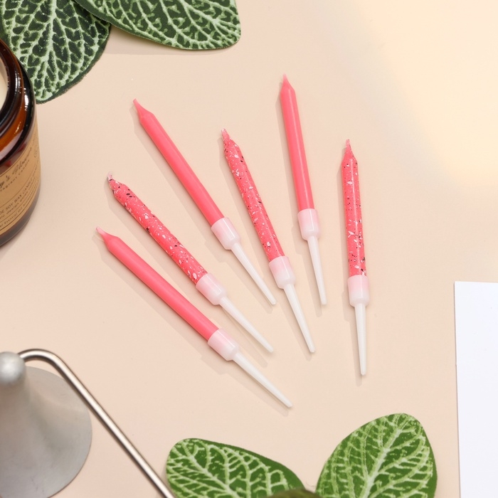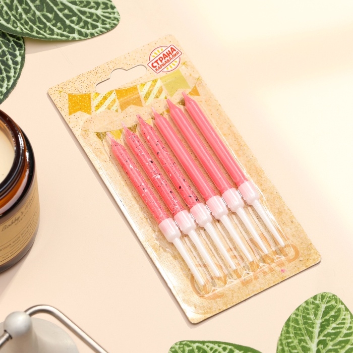 Свечи для торта "Блестящая вечеринка", 6 шт, розовые