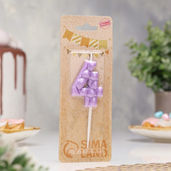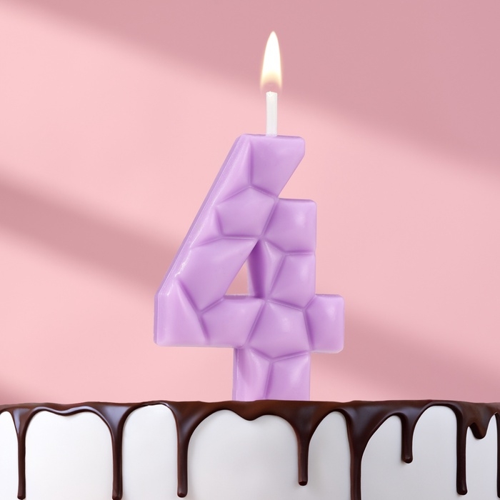 Свеча для торта "Лёд", цифра "4, сиреневая