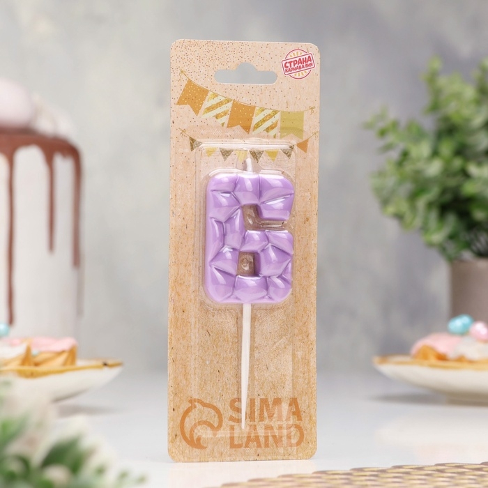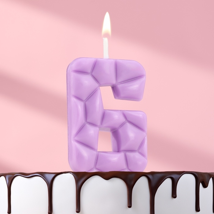 Свеча для торта "Лёд", цифра "6, сиреневая