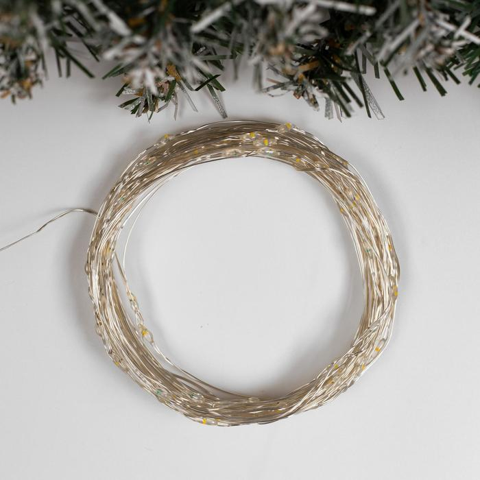 Гирлянда «Нить» 10 м роса, IP20, серебристая нить, 100 LED, свечение тёплое белое, 12 В