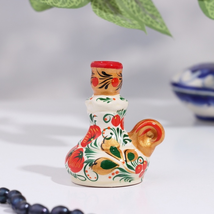 Подсвечник "Хохлома" с ручкой , гжель, вид 2 , цвет