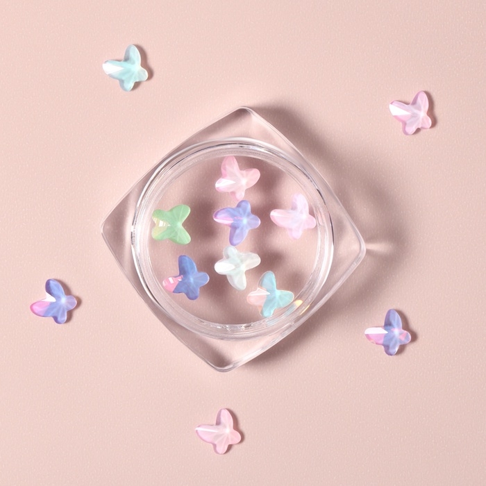 Фигурки для дизайна ногтей «Витражные бабочки», объёмные, разноцветные