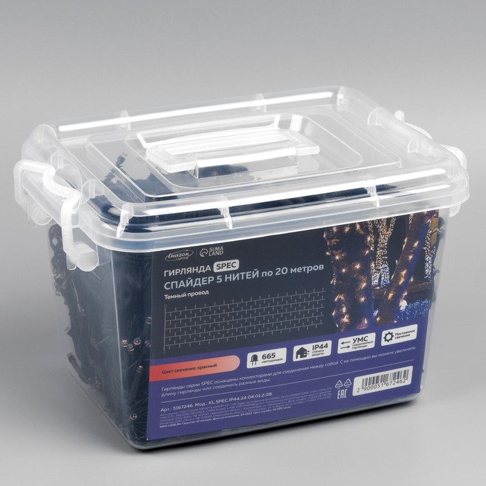 Гирлянда «Клип-лайт» 5 нитей по 20 м, IP44, УМС, тёмная нить, 665 LED, свечение красное, 24 В