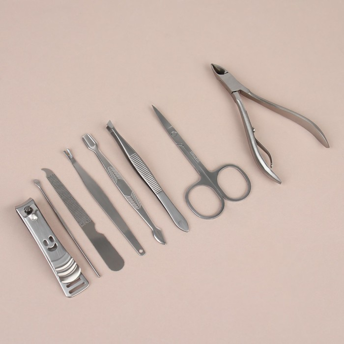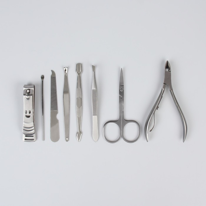 Набор маникюрный, 8 предметов, в футляре, цвет коричневый