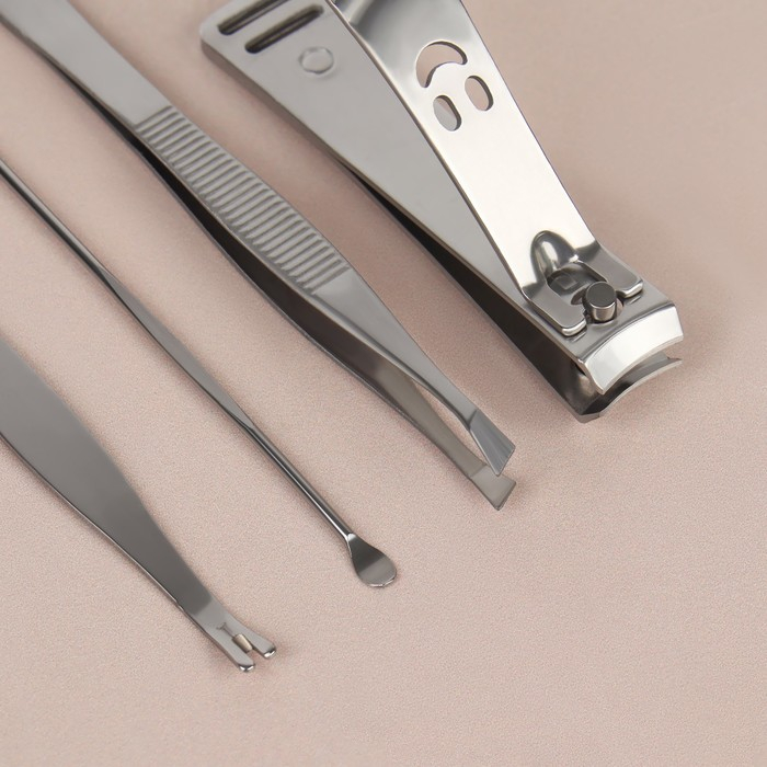 Набор маникюрный, 4 предмета, в футляре, цвет розовый