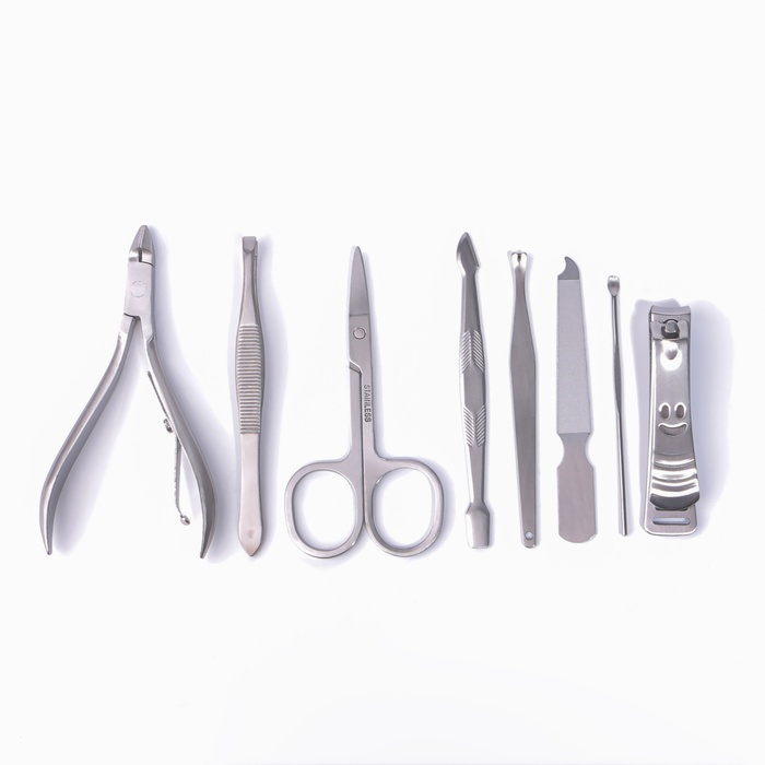 Набор маникюрный, 8 предметов, в футляре, цвет коричневый