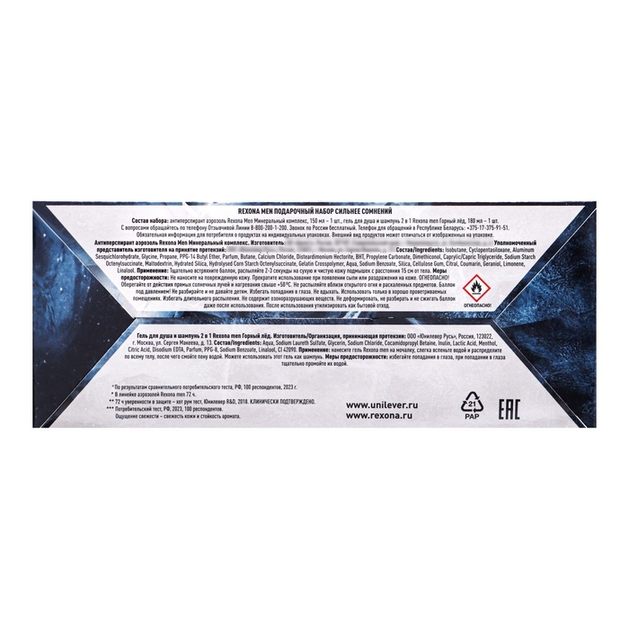 Подарочный набор мужской REXONA MEN "Сильнее сомнений": гель для душа, 180 мл + дезодорант, 150 мл 1
