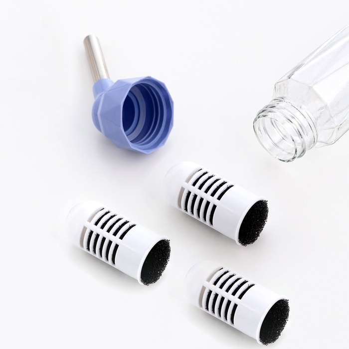 Поилка для грызунов, 80 мл, крепление-пружинка, и два сменных фильтра, синяя
