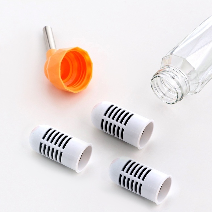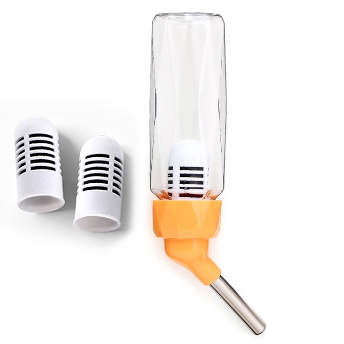 Поилка для грызунов, 80 мл, крепление-пружинка, и два сменных фильтра, оранжевая