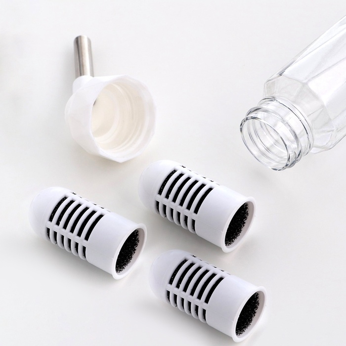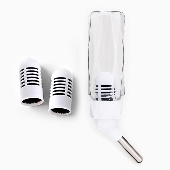 Поилка для грызунов, 80 мл, крепление-пружинка, и два сменных фильтра, белая