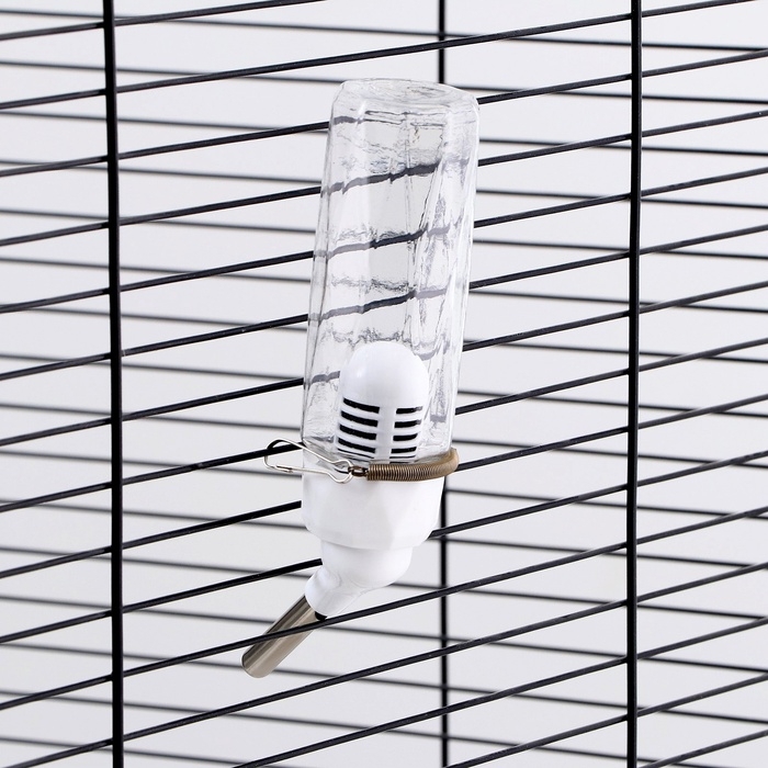 Крепление-пружинка: Уникальная система крепления обеспечивает надежное и удобное размещение поилки в клетке, что позволяет легко регулировать высоту в зависимости от роста животного.