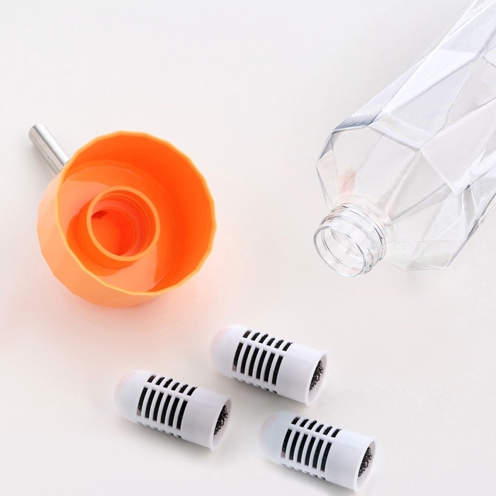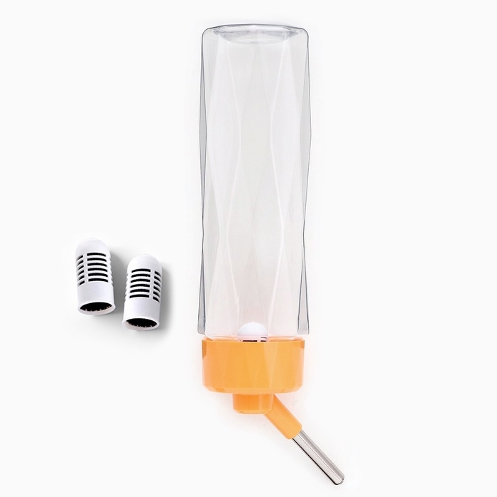 Поилка для животных, 750 мл, крепление-пружинка, и два сменных фильтра, оранжевая