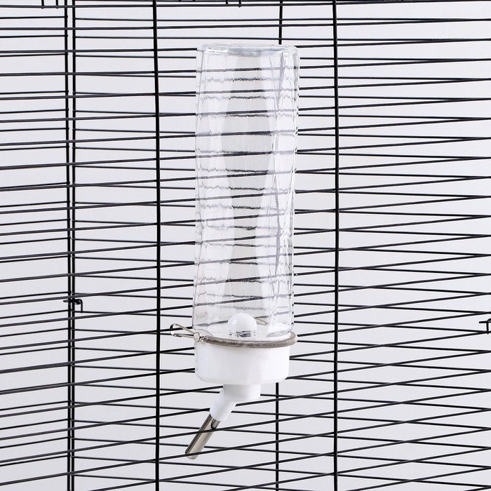 Крепление-пружинка: Удобная система крепления обеспечивает надежное крепление поилки к клетке или вольеру, предотвращая ее переворачивание и разлив воды.