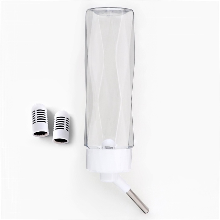 Поилка для животных, 750 мл, крепление-пружинка, и два сменных фильтра, белая