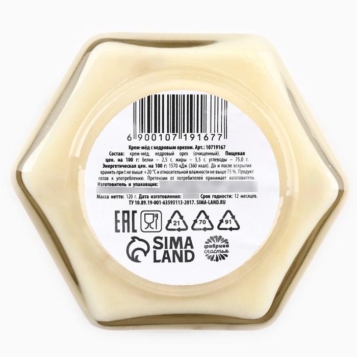 Крем-мёд с кедровым орехом «Лучший мужчина», 120 г