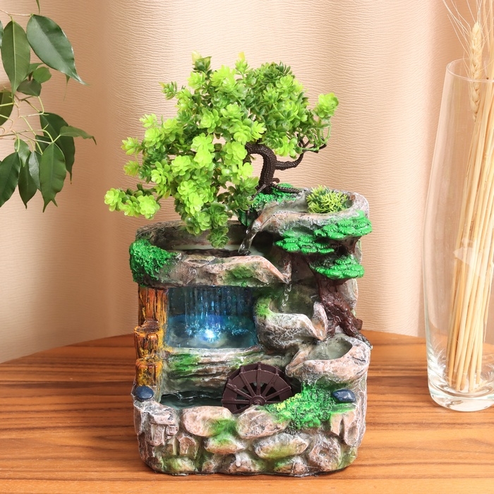 Фонтан "Каменная стена под деревом" 30х17 см (с подсветкой, без шарика)