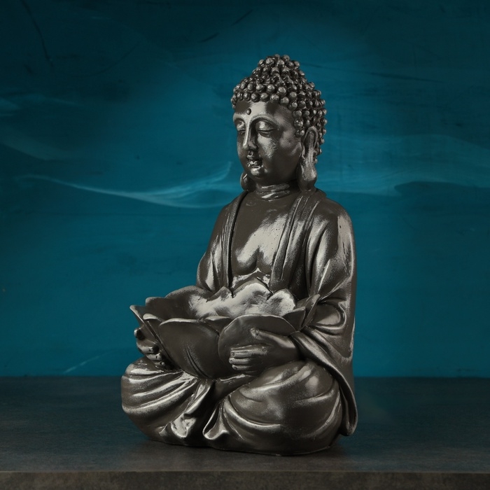 Копилка "Будда с лотосом" серый камень, 31см