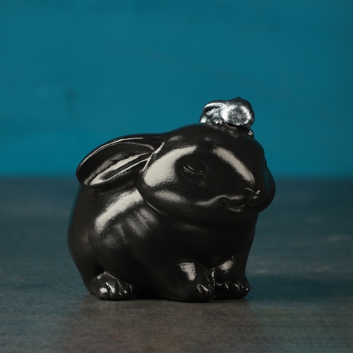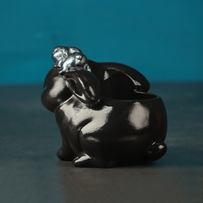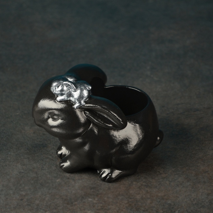 Фигурное кашпо "Зайчиха с зайчонком" черный с серебром, 10см