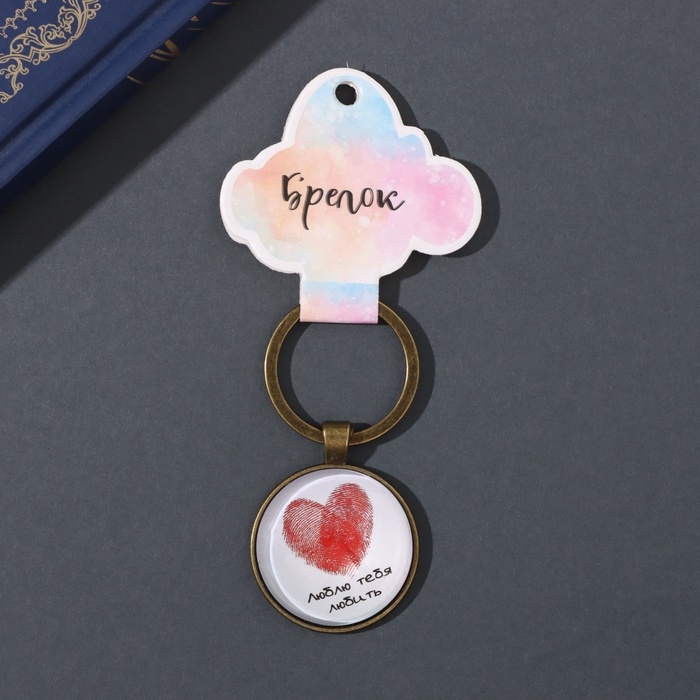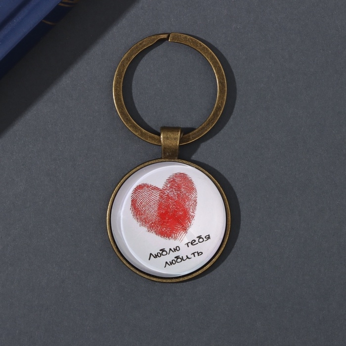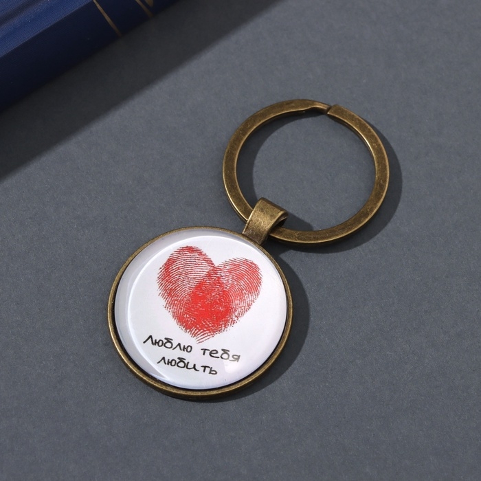 Брелок стекло, металл "Круг. Сердце отпечатки" d=3 см