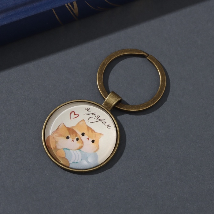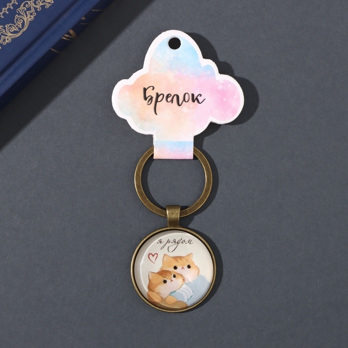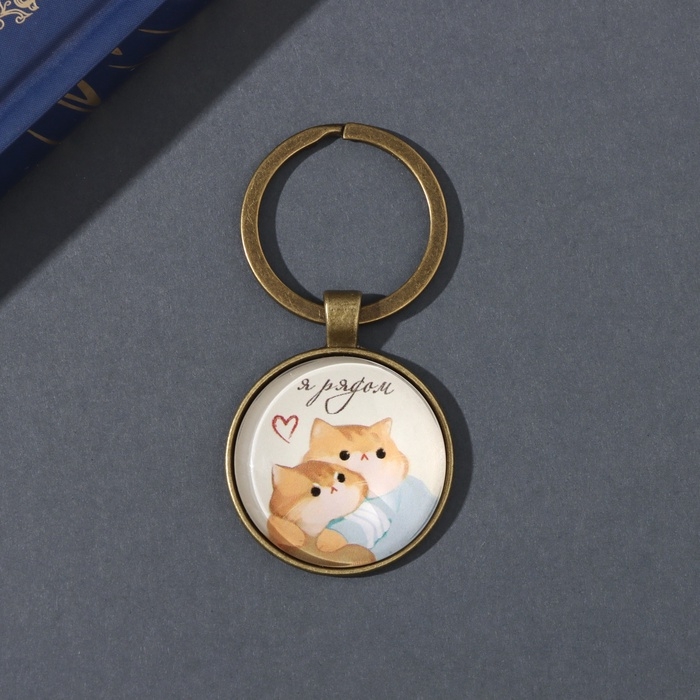 Брелок стекло, металл "Круг. Котики. Я рядом" d=3 см