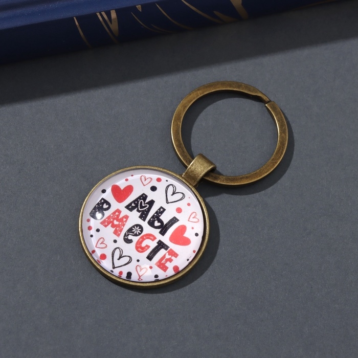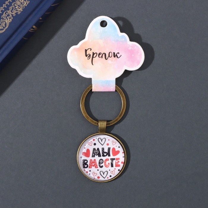 Брелок стекло, металл "Круг. Мы вместе" d=3 см