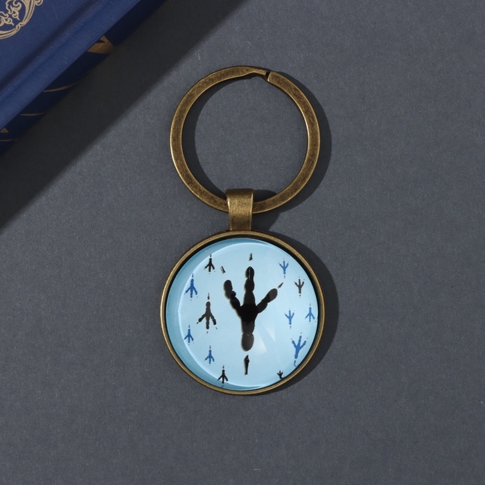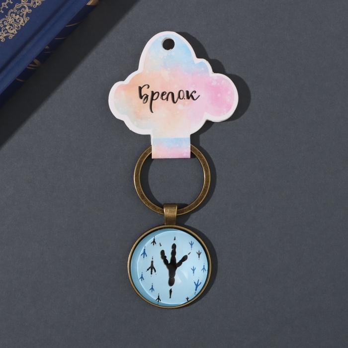 Брелок стекло, металл "Круг. Следы голубя" d=3 см