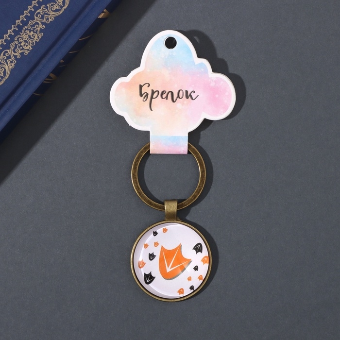 Брелок стекло, металл "Круг. Следы утки" d=3 см