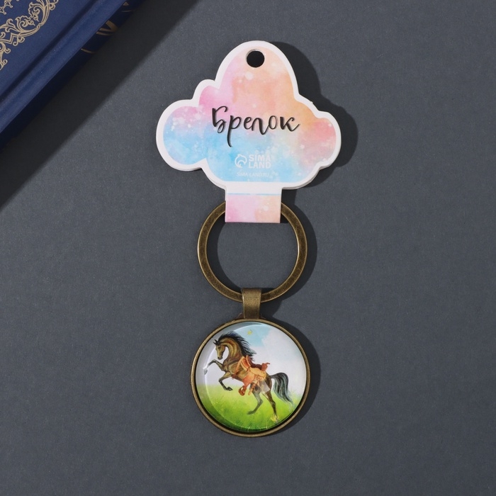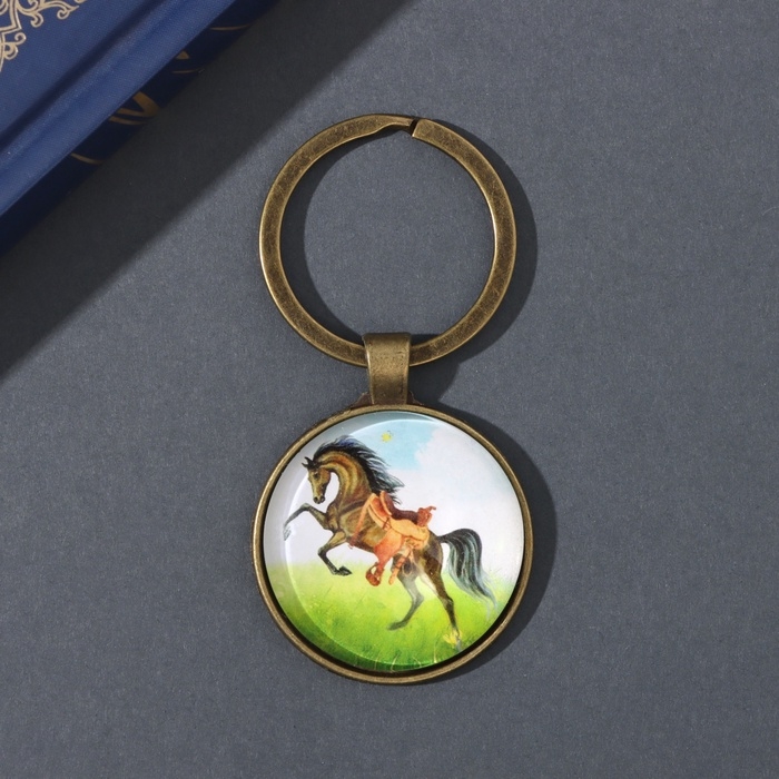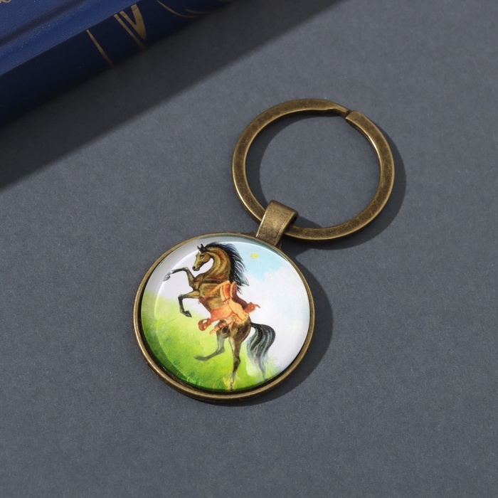 Брелок стекло, металл "Круг. Акварель. Богатырский конь" d=3 см