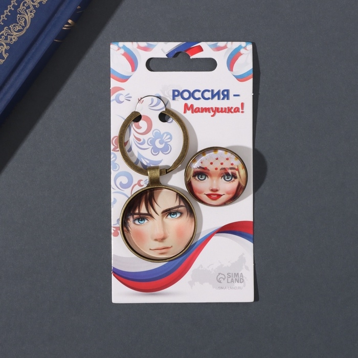 Набор брелок и значок "Русский парень и девушка" 6х11 см