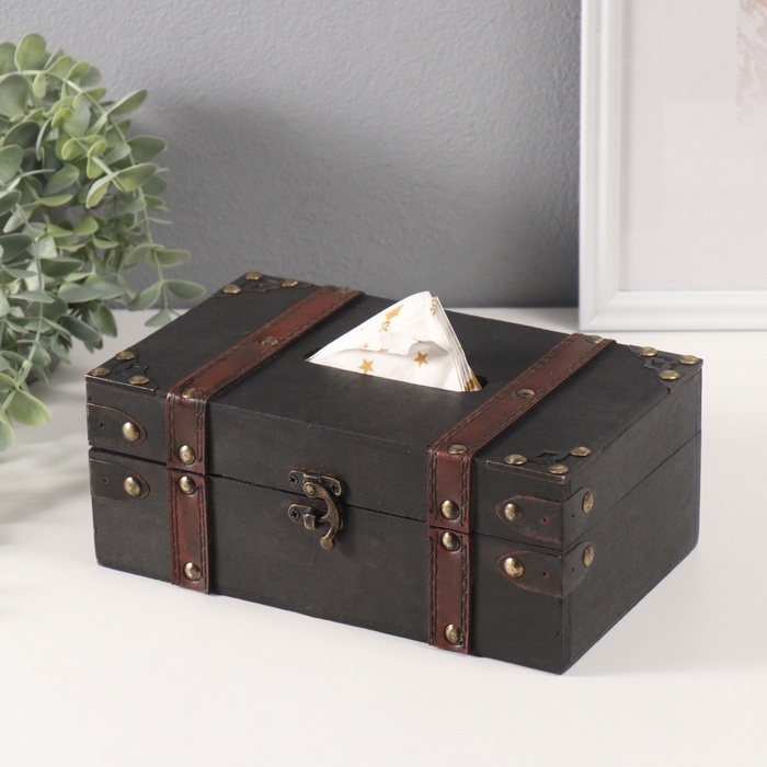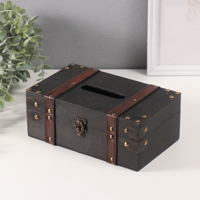 Шкатулка дерево салфетница "Черный чемодан" 14х23х9 см