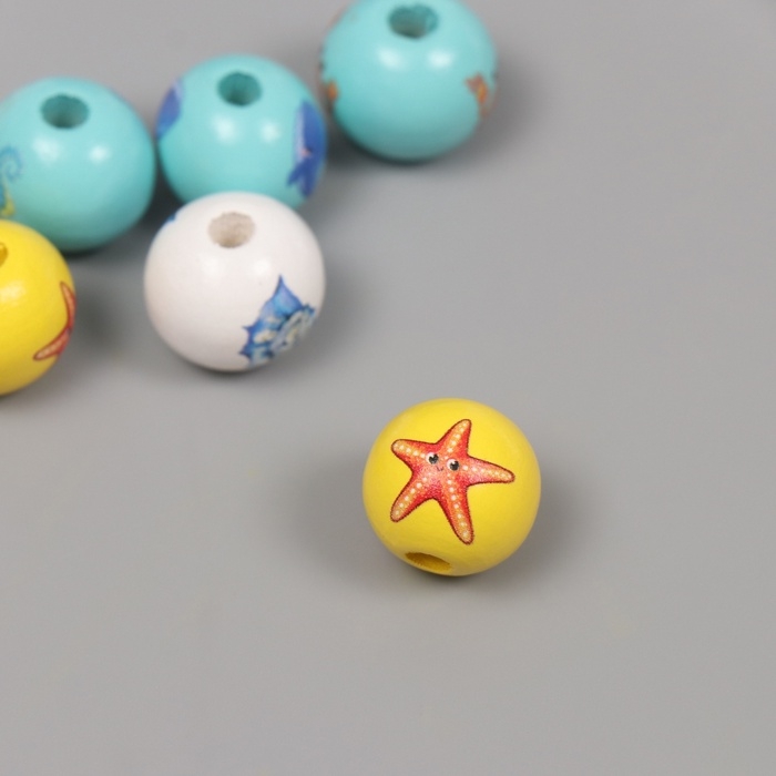 Бусины для творчества дерево "Морские жители" набор 10 шт 1,6х1,6х1,6 см