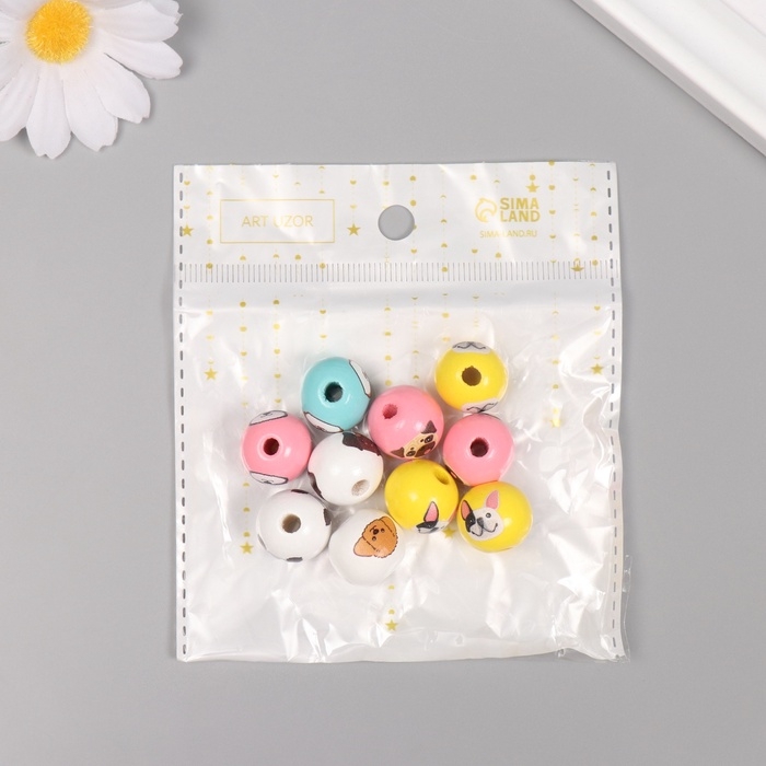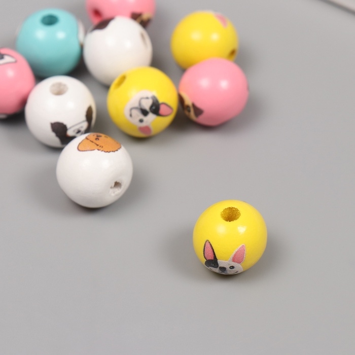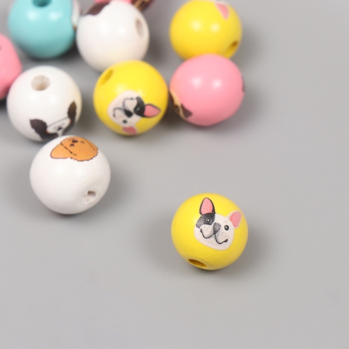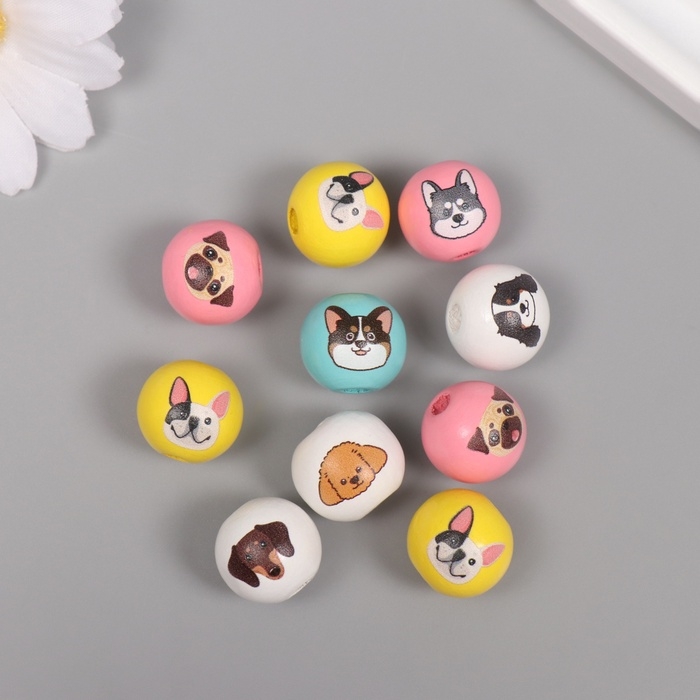 Бусины для творчества дерево "Пёсики" набор 10 шт 1,6х1,6х1,6 см