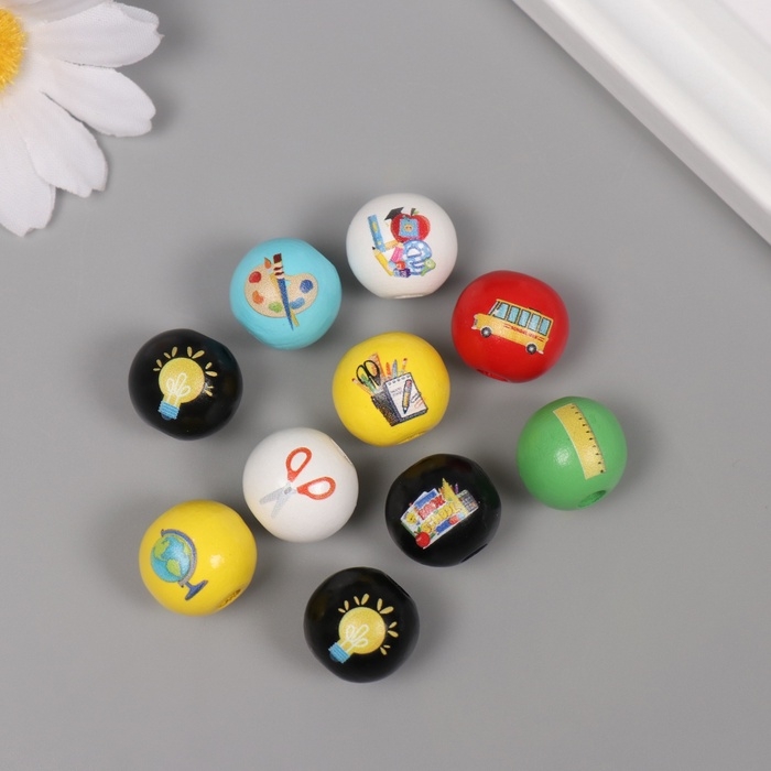 Бусины для творчества дерево "Школьные будни" набор 10 шт 1,6х1,6х1,6 см