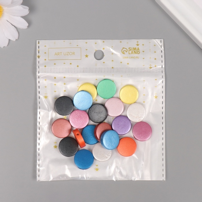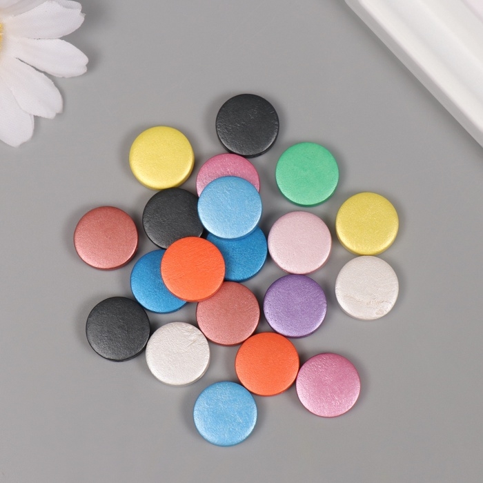 Бусины для творчества дерево "Металлик плоский" набор 20 шт 1,5х1,5х0,5 см