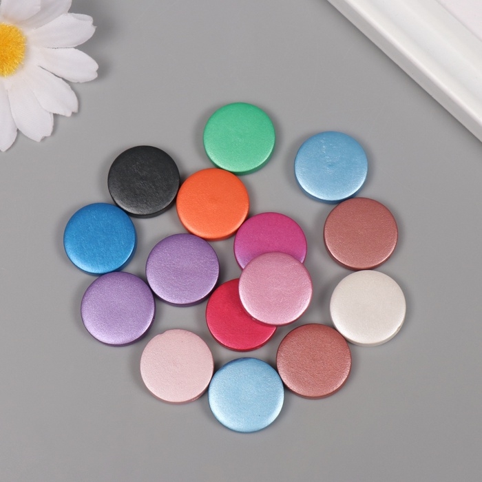 Бусины для творчества дерево "Металлик плоский" набор 15 шт 2х2х0,5 см