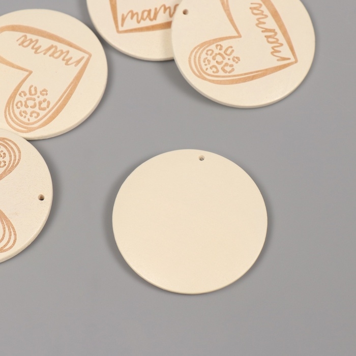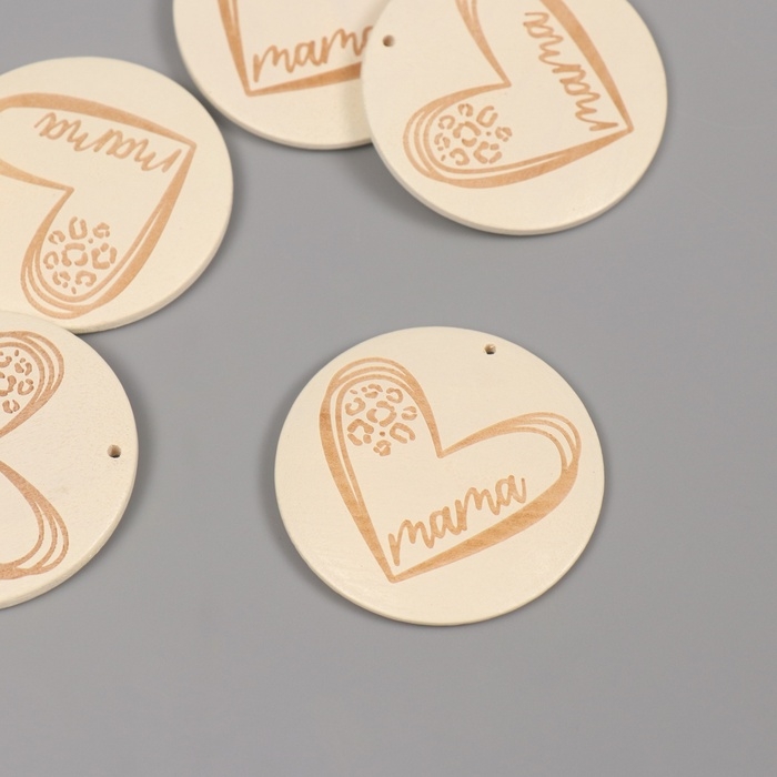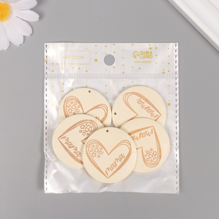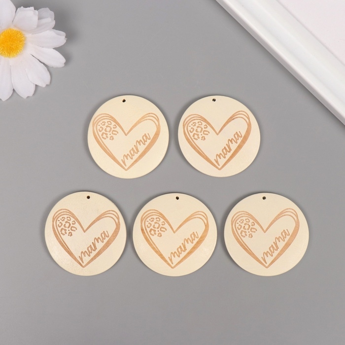 Декор для творчества дерево "Мама. Сердце" белый набор 5 шт 4х4 см